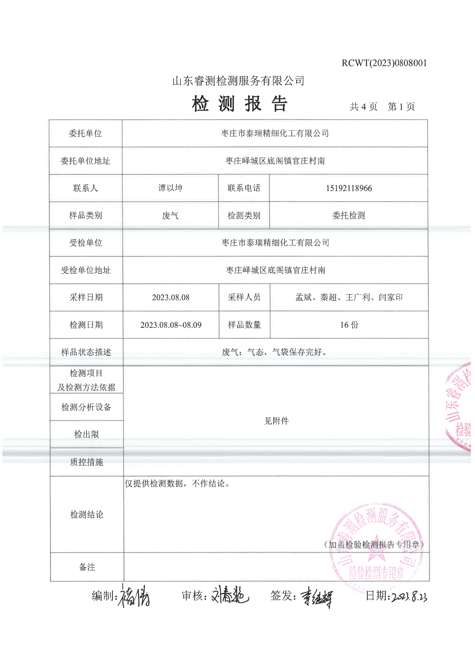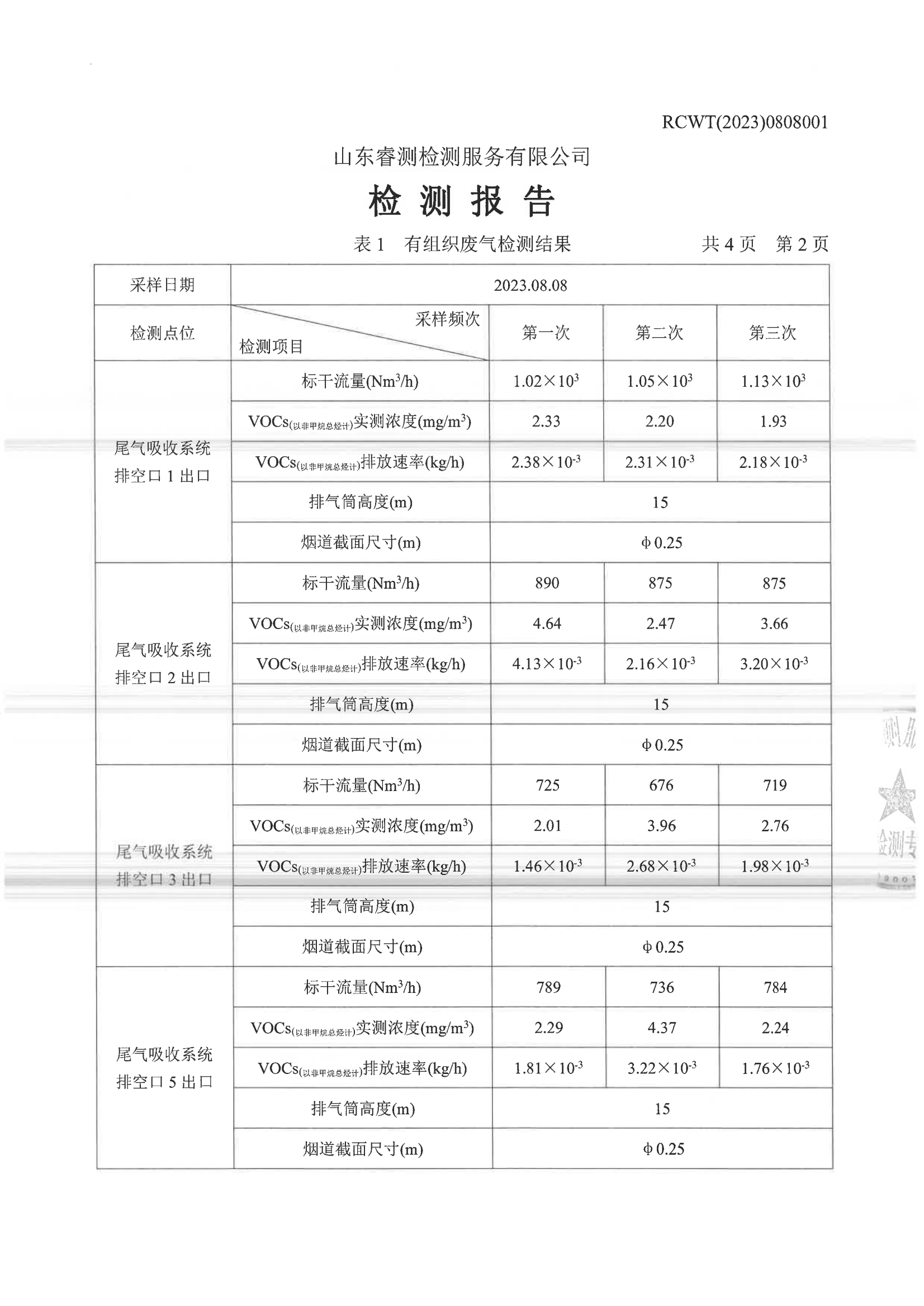 2023年第3季度(8月份)檢測報告