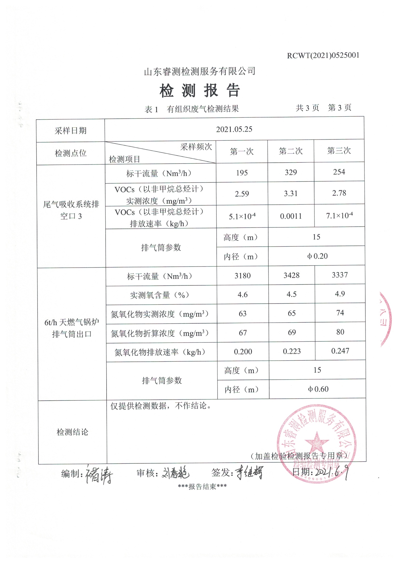 2021年4月份及季度自行檢測(cè)報(bào)告